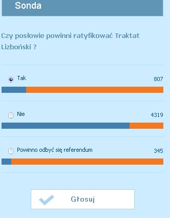 Sondaż umieszczony na stronie partyjnej platforma.org, którego celem jest zbadanie opinii internautów na temat ratyfikacji lizbońskiego traktatu, zaczyna wariować.