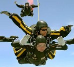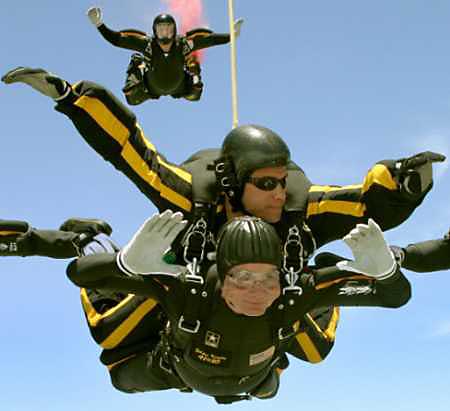 Jego skok obserwowało tysiące Amerykanów. Wylądował niedaleko prezydenckiej biblioteki na rozgrzanej Słońcem trawie w Teksasie.
