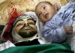 Na zdjęciu 3 miesięczny Mohammed koło zabitego podczas snu ojca.